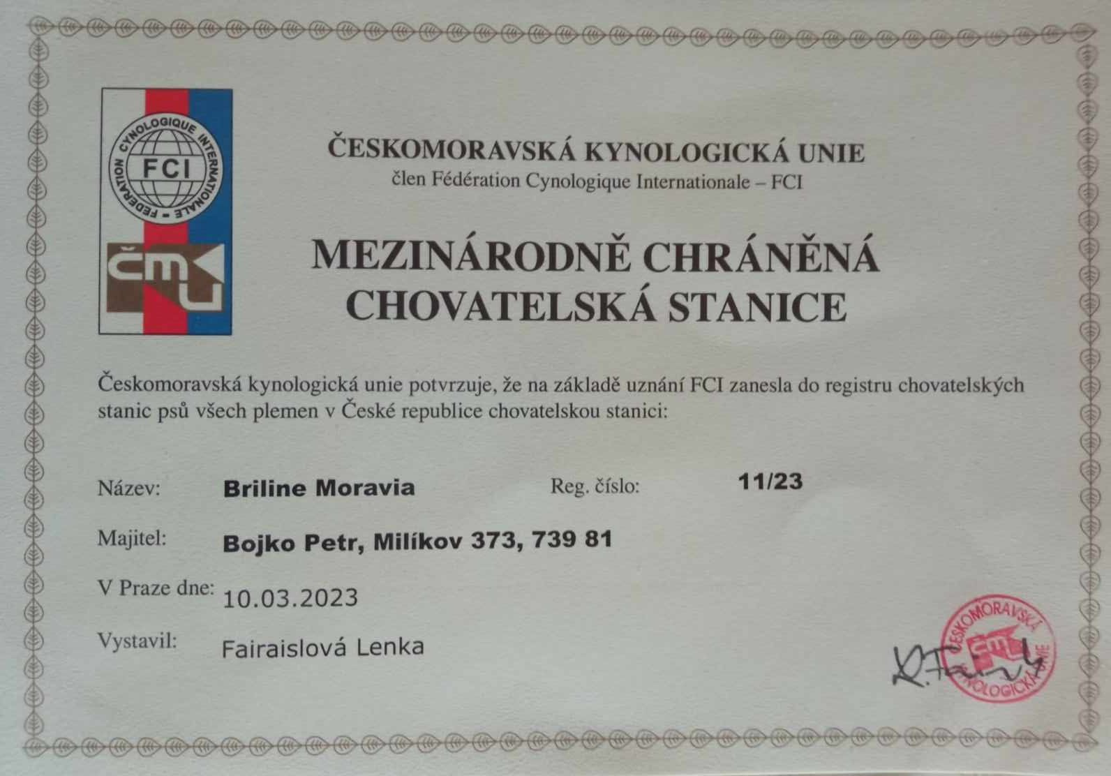 Zakladatelkou našeho chovu je Brixa Anmireto Moravia z vrhu Fia Mapet x Lucipher Galan Nalag.